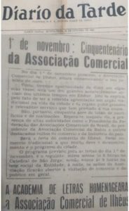 Notícia sobre o 50º aniversário da ASSOCIAÇÃO COMERCIAL DE ILHÉUS, que aconteceu no dia 1º de novembro de 1962. Matéria publicada na Edição do JORNAL DIÁRIO DA TARDE de 25-10-1962. Clique na foto para ampliar.