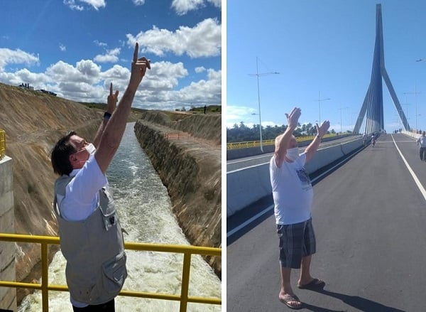 Na primeira e segunda foto, JOSÉ LEITE alegre e feliz comemorando a liberação da Ponte só para pedestres com os amigos PAULO MOREIRA e o vereador IVO EVANGELISTA, que está com muita saúde. TODOS FELIZES NA NOVA PONTE. (Fotos: 28/06/2020).