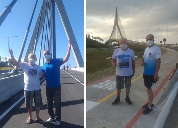 No último domingo, JOSÉ LEITE ficou muito emocionado, veja o porquê: No dia 15 de agosto de 1966, JOSÉ LEITE atravessou a PONTE LOMANTO JÚNIOR, inaugurada naquela data. Cinquenta e quatro anos depois, atravessou a Ponte Nova ILHÉUS/PONTAL inaugurada para pedestres no último dia 28-06-2020.