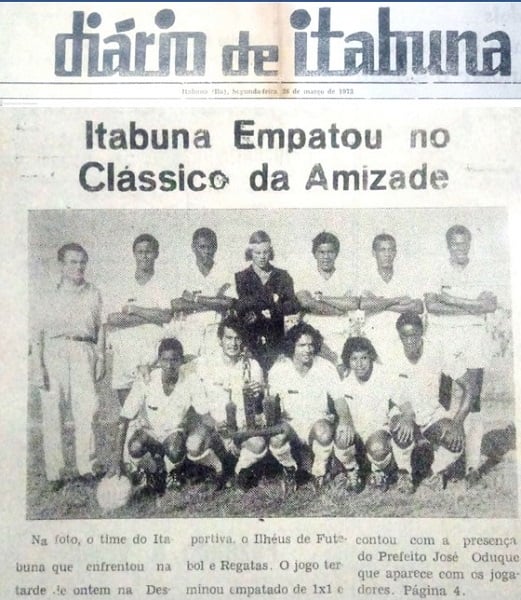 Nos tempos que as duas cidades mais importantes do Sul da Bahia, levavam o Futebol a sério. No dia 26-03-1973 houve um grande jogo entre os times do ITABUNA e o ILHÉUS FUTEBOL E REGATAS. Notícia do saudoso JORNAL DIÁRIO DE ITABUNA, edição de 26 de março de 1973.