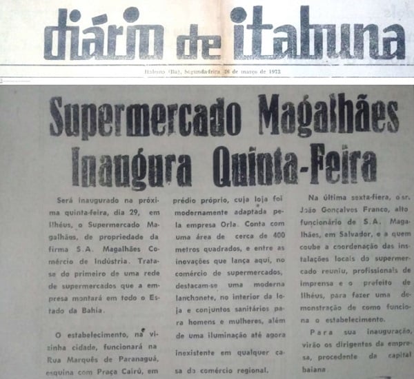 E nessa mesma edição saiu uma Notícia da INAUGURAÇÃO DO SUPERMERCADO MAGALHÃES no prédio do mesmo nome localizado na PRAÇA CAIRÚ. Tempos depois, a REDE MESSIAS comprou o estabelecimento e alguns anos depois fechou.