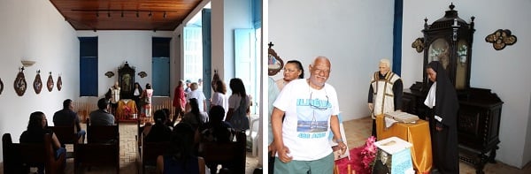 Nas duas fotos, alguns rezando e outros admirando a Estátua do PADRE CÍCERO e a BEATA MARIA DE ARAÚJO no MUSEU DO CASARÃO DO HORTO.