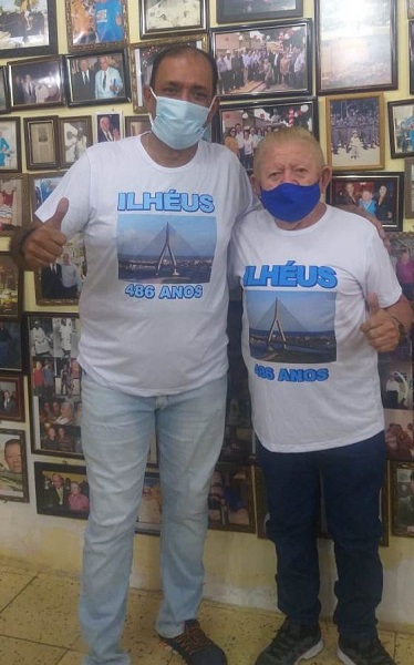 Na última quarta feira (14-10-2020) JOSÉ LEITE recebeu a visita do Prefeito de ILHÉUS MÁRIO ALEXANDRE (MARÃO). Na oportunidade o presenteou com uma camisa, tendo a foto da Nova Ponte.