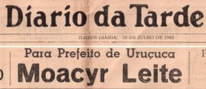 Parabéns para o Prefeito eleito da vizinha cidade de URUÇUCA, MOACYR LEITE JUNIOR. Seu pai MOACYR LEITE também foi Prefeito na eleição acontecida no ano de 1962. Veja a notícia acima, Edição do JORNAL DIÁRIO DA TARDE de