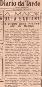 A Cultura Popular, As Tradições Históricas da BAHIA. Pouca coisa é levada a sério, e as datas, a cada dia sendo ESQUECIDAS NESSA CIDADE. Leia a matéria acima divulgada no DIÁRIO DA TARDE edição de 1º de julho de 1950.