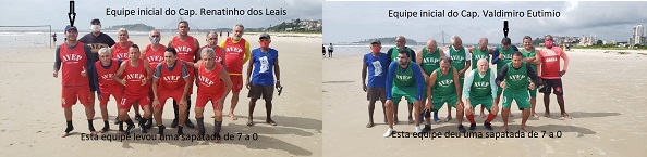 A Associação dos Veteranos de Esporte Praiano –AVEP, entidade de ‘babas de praia’ quase centenária de Ilhéus, realizou a 7ª rodada da aludida modalidade esportiva em que a equipe do Capitão Valdimiro Eutimio goleou a do Capitão Renatinho dos Leais por 7 a 0 com três(3) gols marcados pelo próprio Valdimiro Eutimio, Eldon do Ofertão, Marconi e dois(2) de Paulinho da AFC. O baba aconteceu como de praxe –domingo e pela manhã– na praia da Avenida Soares Lopes, área localizada nas proximidades do espaço cultural Tenda Teatro Popular de Ilhéus e dos campos de tênis da Associação Ilheense de Beach Tennis – AIBT. No 1º tempo o baba foi apitado por Wagner Salviano; no 2º por Wilson Salviano, atuando os dois, conforme os olheiros, sem maiores reclamos por parte dos partícipes. Ambos pertencem a Associação de Árbitros de Futebol de Campo de Ilhéus –AAFCI. O beque-de-vigor Alvinho Malta levou Cartão Amarelo. A coordenação da rodada –denominada de Diretor de Baba do Dia– esteve a cargo do meia-de-ligação Beto Lilica.