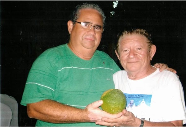 Uma triste notícia para JOSÉ LEITE e a cidade de JUAZEIRO DO NORTE foi o falecimento do amigo NORMANDO SÓRACLES no dia de NATAL, e foi sepultado no último sábado (26-12-2020). DESCANSE EM PAZ, MEU QUERIDO AMIGO! Na foto, de 5 anos atrás, NORMANDO presenteando uma laranja gigante colhido do seu sítio para JOSÉ LEITE.