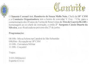 Lembrando da Festa dos 40 anos da TURMA DE RESERVISTAS DOS TIRO DE GUERRA 06-240 que serviram no ano de 1964, o ano que JOSÉ LEITE serviu. A Festa aconteceu no dia 27 de junho de 2004. Há mais de 10 anos que o TIRO DE GUERRA NÃO EXISTE MAIS. Tudo culpa, na época, do Governo Municipal! Clique na foto para ampliar.