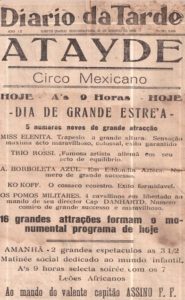 Até a década de 1970 o CIRCO, quando chegava numa cidade, era a notícia principal, principalmente quando a companhia era Internacional. Um exemplo foi quando o CIRCO ATAYDE chegou em ILHÉUS no ano de 1936. Observe a programação na foto acima, edição do JORNAL DIÁRIO DA TARDE de 31-08-1936. Clique na foto para ampliar.
