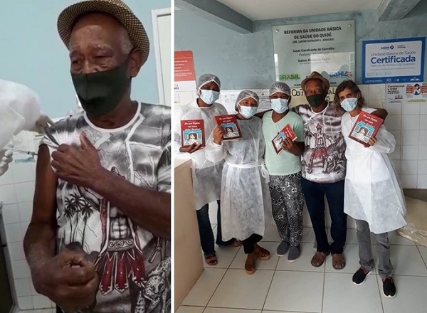 Esse é o amigo CORONEL GERALDO DIAS DE ANDRADE, tomou a segunda dose da vacina e presenteou a cada uma das ENFERMEIRAS (o) com um LIVRO de sua autoria: PORQUE O VIGÁRIO NÃO CASOU LOLITA KAROLINE?