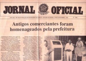 Aconteceu há 30 anos, uma das mais bonitas homenagens aos COMERCIANTES da Rua Dom Pedro II. Foi a inauguração de um PEDESTAL com uma Placa gravada com os nomes dos saudosos Comerciantes que tinham Lojas naquela Rua. O Pedestal fica entre as Ruas Dom Pedro II e a Rodolfo Vieira. Leia a matéria acima. Na foto, da esquerda para direita: Os saudosos ELIAS OCKE (Comerciante), JOÃO LÍRIO (Prefeito de ILHÉUS na época), Dr. ARISTON CARDOSO (ALI) e JOSÉ LEITE (vivo). Matéria publicada na edição do JORNAL OFICIAL de 30 de novembro de 1991. Clique na foto para ampliar.