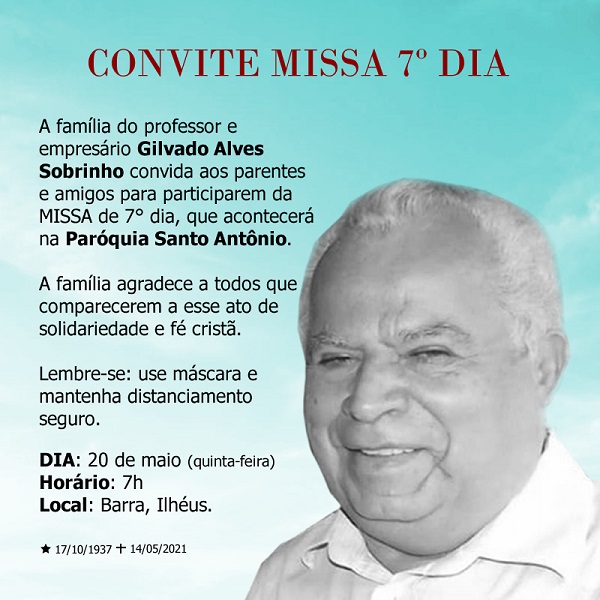 Aconteceu na última quinta feira (20-05-2021) a Missa de 7º dia do saudoso amigo GIVALDO SOBRINHO. DESCANSE EM PAZ!