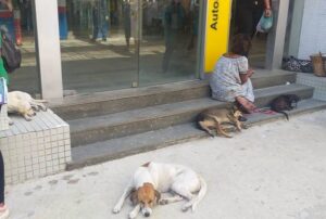 A Porta Principal do Banco mais importante da cidade, o Cliente para entrar, tem de pular para não pisar nos CACHORRINHOS. Nada contra os animais.