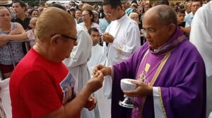 PARABÉNS para o Bispo DOM GILBERTO PASTANA da Diocese do CRATO promovido para ser ARCEBISPO DA DIOCESE DE SÃO LUIZ (MARANHÃO). Na foto: JOSÉ LEITE comungando e recebendo a hóstia das mãos de DOM GILBERTO PASTANA (Foto:20-07-2019).