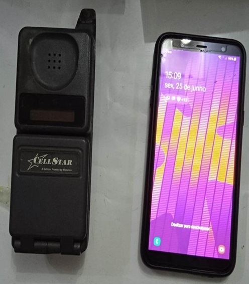 Saudade do primeiro celular de JOSÉ LEITE (TIJOLÃO). No lado direito o celular atual de JOSÉ LEITE.