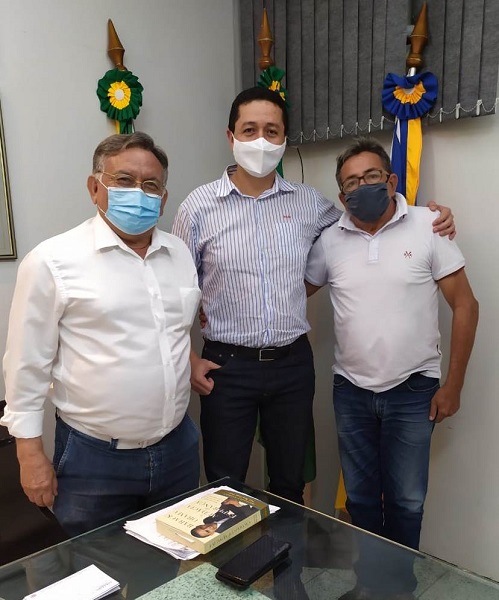 Reunião bastante proveitosa que aconteceu na última segunda feira (21-06-2021) com o Prefeito de JUAZEIRO DO NORTE, GLEDSON BEZERRA, o Chefe de Gabinete Dr. CARLOS MACEDO, Secretária de Gabinete JOSY LIMA e o Jornalista e Radialista ALUÍSIO FILHO. Nessa Reunião foram discutidos vários projetos para o engrandecimento do Turismo e da Cultura de JUAZEIRO DO NORTE entre eles a ESTÁTUA DE DANIEL WALKER que será inaugurada no dia 5 de setembro de 2021, na PRAÇA PADRE CÍCERO. Na foto acima: O Prefeito GLEDSON BEZERRA ladeado pelo Chefe de Gabinete Dr. CARLOS MACEDO (lado esquerdo) e o Radialista ALUISIO FILHO