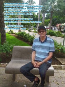 Montagem de como vai ficar a ESTÁTUA DE DANIEL WALKER que será colocada e inaugurada num dos Bancos da PRAÇA PADRE CÍCERO.