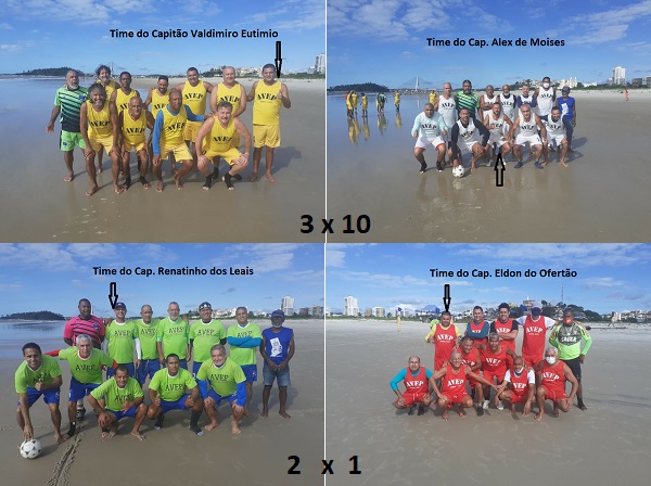 A Associação dos Veteranos de Esporte Praiano (AVEP), entidade de ‘babas de praia’ quase centenária de Ilhéus, realizou domingo (11) pela manhã sua 8ª rodada da mencionada atividade esportiva da Temporada 2021. Com a bola em jogo (Campo Grimaldo) o quadro do Capitão Renatinho dos Leais venceu o do Capitão Eldon do Ofertão por 2 a 1, com gols de Artur ‘Alicate’ Kruschewsky e Lugimar; para a perdedora marcou o próprio Cap. Eldon do Ofertão. No Campo Martial o time do Capitão Alex de Moises goleou o do Capitão Valdimiro Eutímio por 10 a 3 com 2 gols de Luciano Santana, 2 de Garrancho 100 Anos de Praia, 1 de Bira da Polícia, 1 de Rogério II, 1 de Badunga e 3 do próprio Cap. Alex de Moises; os gols da derrotada foram feitos pelo capitão Valdimiro Eutímio e por Carlos Henrique. Os babas foram realizados como de praxe na praia da Avenida Soares Lopes na área adjacente ao espaço cultural Tenda Teatro Popular de Ilhéus e aos campos de tênis da Associação Ilheense de Beach Tennis (AIBT). No 1º campo (Grimaldo) marcou Ronivon Pereira Dias com boa atuação; no 2º (Martial), Enderson Souza Santana com atuação regular. As avaliações saíram dos olheiros de árbitros. Ambos fazem parte da Associação de Árbitros de Futebol de Campo de Ilhéus (AAFCI). Levaram Cartão Amarelo, Luciano Santana, Everaldo Cabeça de Flande, Cesar de Militão e Sena; Cartão Vermelho, Nilton do BB. A rodada foi coordenada, na qualidade de Diretor de Baba do Dia, pelo beque-de-aguardo Robertão,