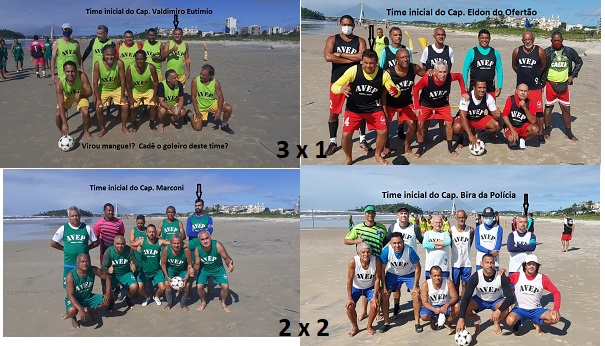 A Associação dos Veteranos de Esporte Praiano (AVEP), entidade de ‘babas de praia’ quase centenária de Ilhéus, realizou domingo (11) pela manhã sua 8ª rodada da mencionada atividade esportiva da Temporada 2021. Com a bola em jogo (Campo Grimaldo) o quadro do Capitão Renatinho dos Leais venceu o do Capitão Eldon do Ofertão por 2 a 1, com gols de Artur ‘Alicate’ Kruschewsky e Lugimar; para a perdedora marcou o próprio Cap. Eldon do Ofertão. No Campo Martial o time do Capitão Alex de Moises goleou o do Capitão Valdimiro Eutímio por 10 a 3 com 2 gols de Luciano Santana, 2 de Garrancho 100 Anos de Praia, 1 de Bira da Polícia, 1 de Rogério II, 1 de Badunga e 3 do próprio Cap. Alex de Moises; os gols da derrotada foram feitos pelo capitão Valdimiro Eutímio e por Carlos Henrique. Os babas foram realizados como de praxe na praia da Avenida Soares Lopes na área adjacente ao espaço cultural Tenda Teatro Popular de Ilhéus e aos campos de tênis da Associação Ilheense de Beach Tennis (AIBT). No 1º campo (Grimaldo) marcou Ronivon Pereira Dias com boa atuação; no 2º (Martial), Enderson Souza Santana com atuação regular. As avaliações saíram dos olheiros de árbitros. Ambos fazem parte da Associação de Árbitros de Futebol de Campo de Ilhéus (AAFCI). Levaram Cartão Amarelo, Luciano Santana, Everaldo Cabeça de Flande, Cesar de Militão e Sena; Cartão Vermelho, Nilton do BB. A rodada foi coordenada, na qualidade de Diretor de Baba do Dia, pelo beque-de-aguardo Robertão,