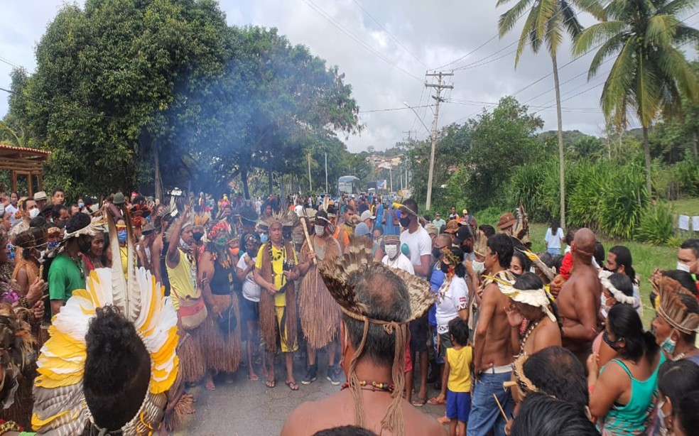 Mobilização acontece na BA-001, em Ilhéus, e faz parte de um ato nacional contrário à transferência da competência para o Congresso Nacional. Atualmente, prerrogativa cabe à Fundação Nacional do Índio (Funai).