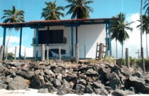 Essa casa da foto acima, bem protegida com essa MURALHA DE PEDRAS. No ano passado, num correr de 10 dias a casa foi totalmente destruída. Alguém sabe o por quê? Depois eu conto!