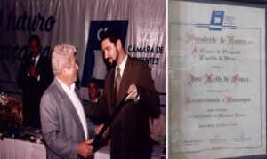 Um dos momentos de emoção na vida empresarial de JOSÉ LEITE, receber o DIPLOMA DE PRESIDENTE DE HONRA DA CDL DE ILHÉUS assinada pelo PRESIDENTE DA FEDERAÇÃO DOS LOJISTAS DA BAHIA, DEUSDETEH JÚNIOR e o PRESIDENTE DA CDL DE ILHÉUS, JAMIL OCKE.