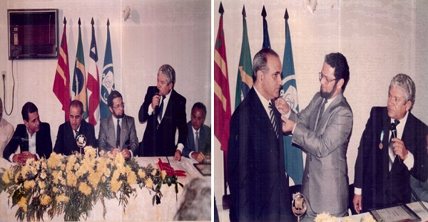 1ª Foto: O Ex. Presidente MOISÉS BOHANA dando posse ao Novo Presidente do CDL DE ILHÉUS, JOSÉ LEITE (1989).