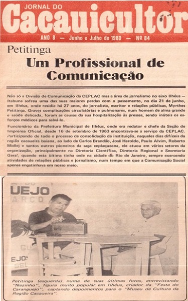 JOSÉ LEITE conheceu o grande jornalista, o saudoso MYRTES PETITINGA e o saudoso NEZINHO, organizador de uma das tradicionais Festas de ILHÉUS. AGORA SÓ RESTAM SAUDADES. Matéria publicada no JORNAL DO CACAUICULTOR edição de junho de 1980. Clique na foto para ampliar.