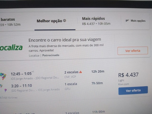 Entenda o motivo de JOSÉ LEITE não ter viajado para passar o Feriado de DIA DE FINADOS em JUAZEIRO DO NORTE. A Passagem Aérea (ida e volta) estava custando R$ 4.000,00 (quatro mil reais). O dinheiro dava para arranjar, o problema é a coragem. Observe acima o preço da passagem ILHÉUS/PETROLINA/ILHÉUS, quanto estava custando na semana passada. Com essa quantia acima dá pra fazer uma viagem para um País da AMÉRICA DO SUL e outro da EUROPA. Clique na foto para ampliar.