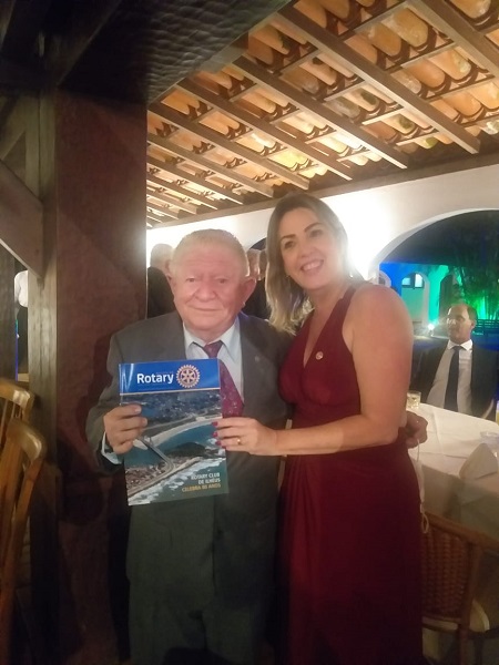 O Rotariano JOSÉ LEITE recebendo a Revista em homenagem aos 80 anos do ROTARY CLUB DE ILHÉUS das mãos da secretária CATIANA BRITO. (Foto: 05-11-2021).