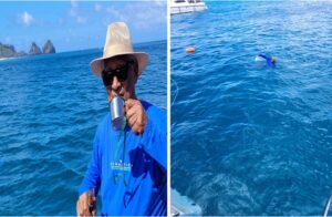 2ª Foto: O CORONEL GERALDO NADANDO NAS LINDAS ÁGUAS CRISTALINAS DE FERNANDO DE NORONHA. JOSÉ LEITE NÃO NADA NEM NO RASO, QUANTO MAIS NO FUNDO!