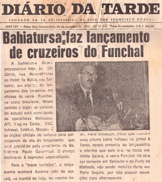Leia a matéria e veja como tudo começou com os Transatlânticos atracando no PORTO DE ILHÉUS á 30 anos atrás. Matéria publicada no Jornal DIÁRIO DA TARDE de ILHÉUS, edição de 4 de novembro de 1992.