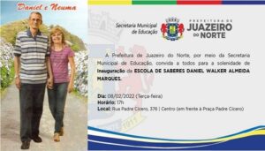 Inauguração da ESCOLA DE SABERES DANIEL WALKER na próxima semana.