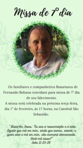 Convidamos a todos os Familiares e amigos para estarem presentes na MISSA DE 7º DIA do amigo FERNANDO BOHANA. Clique na foto para ampliar.