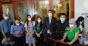 A professora TEREZA NEUMA (blusa verde) agradecendo ao Prefeito GLEDSON BEZERRA (de paletó), a Secretária de Educação e aos Familiares.