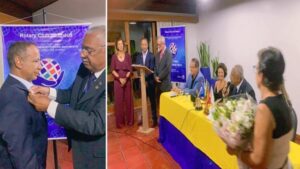 1ª Foto: O Presidente JOSEVANDRO NASCIMENTO colocando a insígnia do ROTARY na Lapela do Paletó de JÚNIOR.