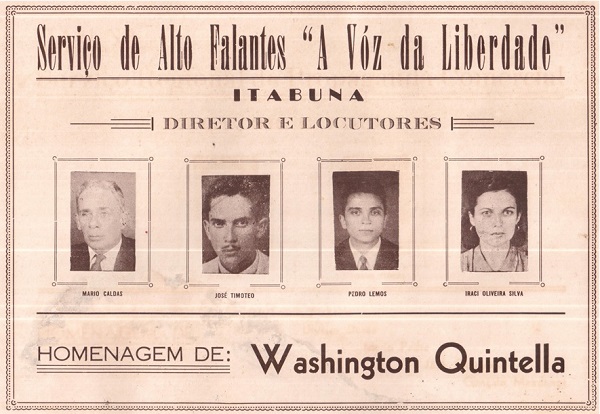 No ano de 1953, ITABUNA já tinha Emissora de RÁDIO, mas os serviços de ALTO FALANTES também eram sucesso. Para quem não conhece, em cada esquina das Ruas do Centro tinham um ALTO FALANTE no parapeito dos Prédios. “A VÓZ DA LIBERDADE” fez sucesso em ITABUNA.