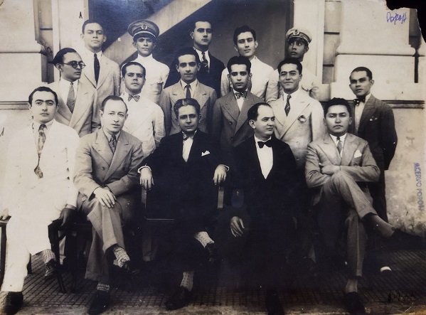 No ano de 1933 a agência do BANCO DO BRASIL tinha 14 funcionários e 2 Policiais para a segurança. Identificados nessa foto: Sentados, da esquerda para direita ADOCIVAL, BERNARDO, Sr. GONDIM (Gerente), Sr. SERRA (Contador) e AUGUSTO CARVALHO. Foto: Nos fundos da velha agência do BANCO DO BRASIL. Clique na foto para ampliar.