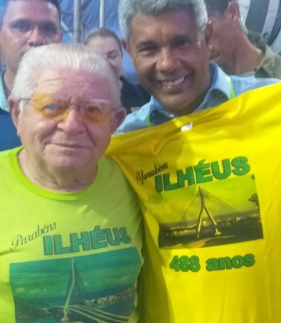 Logo depois da Solenidade da INAUGURAÇÃO DO COLÉGIO, JOSÉ LEITE foi apresentado ao Governador GERÔNIMO por NELSON SIMÕES (Chefe de Cerimonial do Governador). JOSÉ LEITE presenteou o Governador com a nova Camisa em comemoração aos 488 anos de ILHÉUS que acontece esse ano. Clique na foto para ampliar.