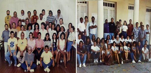 1ª e 2ª Foto: Seminário sobre a importância do CAIXA EXECUTIVO administrado por RAMIRO AQUINO aos funcionários da Agencia do BANCO DO BRASIL- ILHÉUS. Observe que foi dividido em duas partes, porque eram muitos funcionários. O amigo RAMIRO AQUINO é o que aparece sentado de camisa listrada na primeira foto. Na última fileira de pé, na segunda foto, a que aparece de blusa branca é VERA LEITE, irmã de JOSÉ LEITE. (Fotos: 21-03-1993 e 04-04-1993). Clique na foto para ampliar.