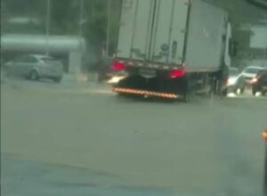 Ilhéus registra alagamentos por causa da forte chuva; árvore caiu e interditou parte da BR-415