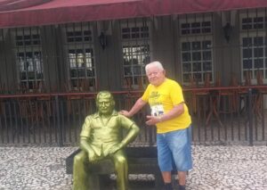 JOSÉ LEITE ao lado da Estátua de JORGE AMADO de frente ao BAR VESÚVIO, trabalho de MÁRCIO PINTO. Clique na foto para ampliar.
