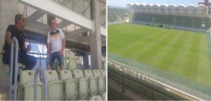 JOSÉ LEITE sendo recebido pelos seus amigos ALUÍZIO FILHO (lado esquerdo), Dr. RAIMUNDO MACÊDO (Ex. Prefeito de JUAZEIRO DO NORTE) e JOCA BARBOSA. Foto: 14-07-2023. Clique na foto para ampliar.O Radialista Ilheense VILA NOVA em visita ao Estádio ROMEIRÃO, inaugurado em 2022. Na foto, VILA NOVA e FRANÇA LEITE (ex. Presidente do ICASA).