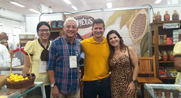 Diretores e atendente no Stand do CHOCOLATE CASEIRO ILHÉUS, a primeira Fábrica de Chocolates Finos de ILHÉUS. Orgulho de todos nós, inaugurada pelo saudoso amigo HANS SCHAEPPI. Foto: 20-07-2023.