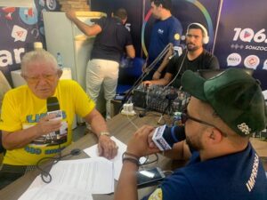 JOSÉ LEITE sendo entrevistado pelo Radialista da RÁDIO 106.SOMZOOM do CRATO. Foto: 15-07-2023.