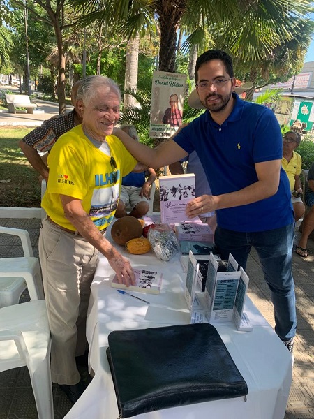 O Escritor Ilheense ANTÔNIO PEREIRA DE SOUZA autografando um livro para o Deputado Estadual (CEARÁ) DAVI DO RAIMUNDÃO. Foto: 16-07-2023.