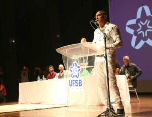 Em solenidade da sessão especial do Conselho Universitário, realizada no Teatro Municipal Candinha Dórea, em Itabuna, o rapper e figura seminal do hip hop brasileiro, Pedro Paulo Soares Pereira, o Mano Brown, recebeu o título de Doutor Honoris Causa pela Universidade Federal do Sul da Bahia (UFSB) nesta quarta-feira (1º). Uma das vozes mais importantes das periferias foi assim homenageada pela academia em face de sua contribuição artística e social ao falar da vivência da juventude negra com a força, a poesia e a astúcia das ruas à frente do grupo Racionais MC’s, desde 1988. O título honorífico significa, para a UFSB, uma parte relevante da celebração dos dez anos da lei de criação da universidade, em um movimento duplo de rever o caminho percorrido e propor novos pontos do trajeto.