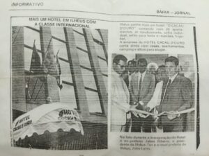 No dia 1º de janeiro de 2024, será um DIA HISTÓRICO para a ORGANIZAÇÃO JOSÉ LEITE DE SOUZA. O HOTEL CACAU D’OURO estará comemorando 35 anos de inaugurado. Aconteceu no dia 1º de janeiro de 1989. O HOTEL está fechado para reforma, mas provavelmente, daqui a 30 dias, estará funcionando para a alegria dos seus hóspedes! Leia acima o informativo do BAHIA JORNAL publicado em Janeiro/1989. Clique na foto para ampliar.