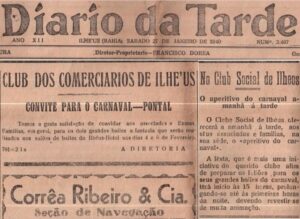 Quem se lembra sabe muito bem, OS CARNAVAIS DE ILHÉUS eram considerados um dos melhores da BAHIA. Mas, de uns anos pra cá, foi caindo, o povo não é mais aquele, não existe mais incentivos e a cada dia vai desaparecendo. Edição do JORNAL DIÁRIO DA TARDE de 9 de Fevereiro de 1939. Clique na foto para ampliar.
