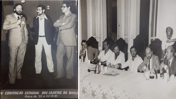1ª Foto: Quarta Convenção dos Lojistas realizada em ILHÉUS no ano de 1981. No centro da foto: o Presidente MOISÉS BOHANA ladeado pelo Presidente da Federação dos Lojistas, JOAQUIM FONSECA JÚNIOR e o Publicitário JORGE RONDAM.